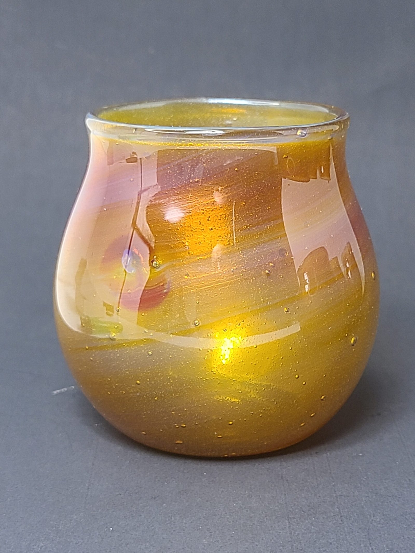 Joelybaby candle holder. Custom amber purple color pull. All Joelybabies come shipped in a little gift box, and with a tea light candle so you can enjoy it right out of the box 🙂
