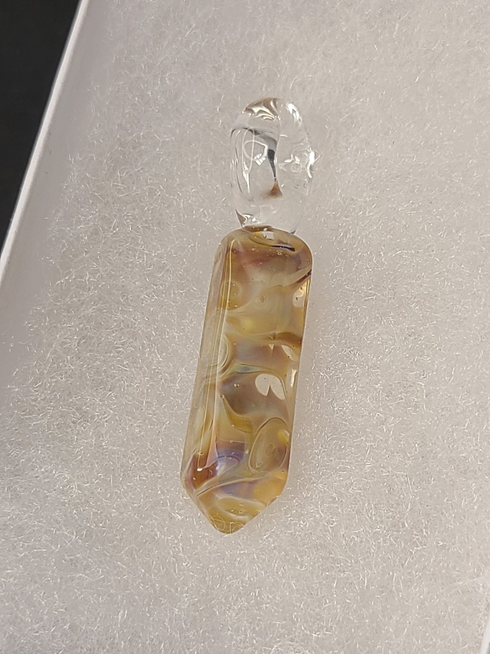 Amber purple swirly #borogem. More amber, less purple on this one. Looks kinda like some sort of stone, rather than glass.