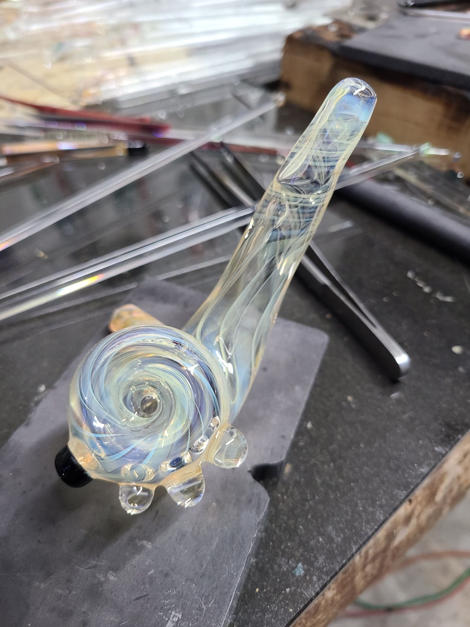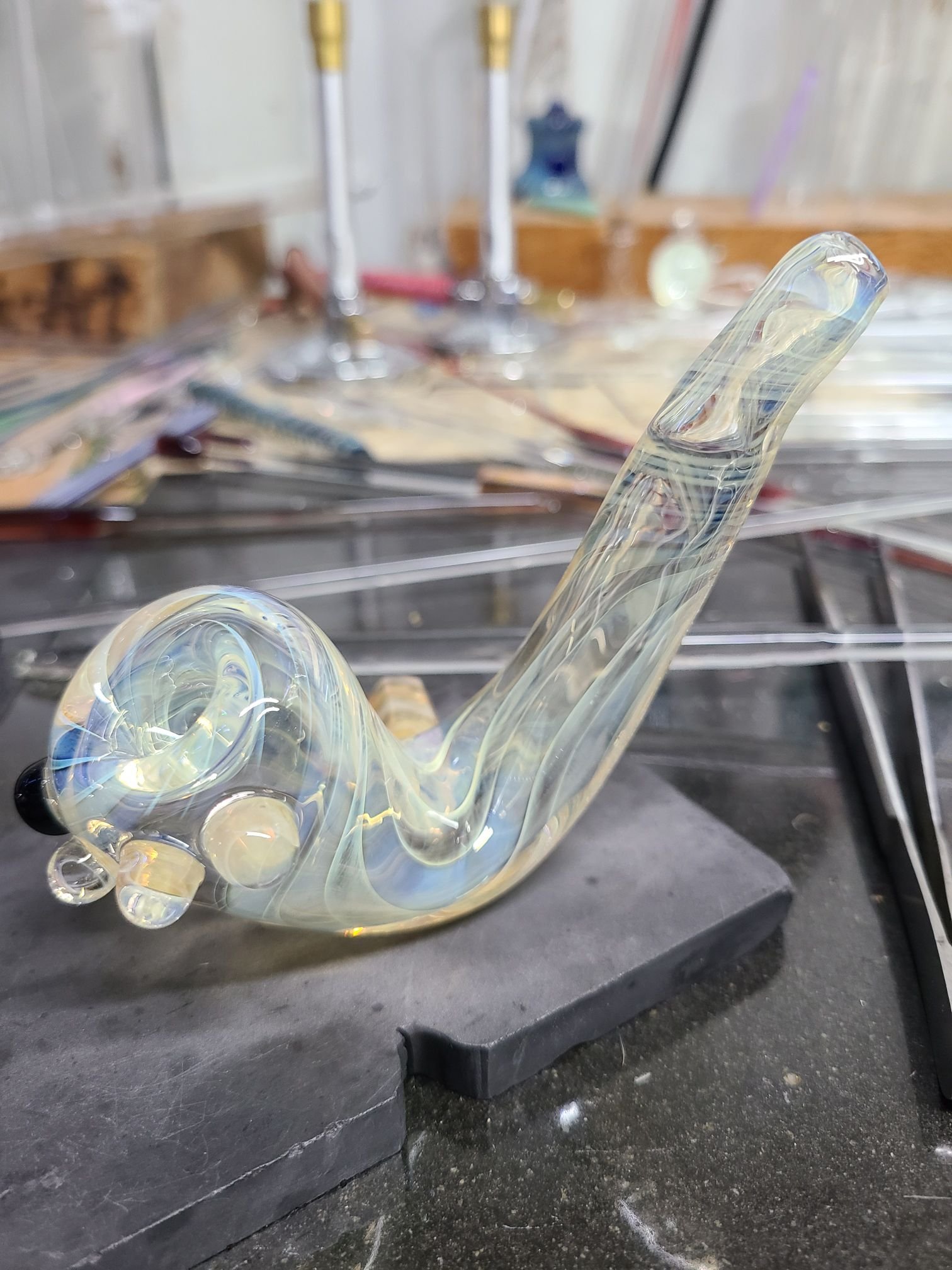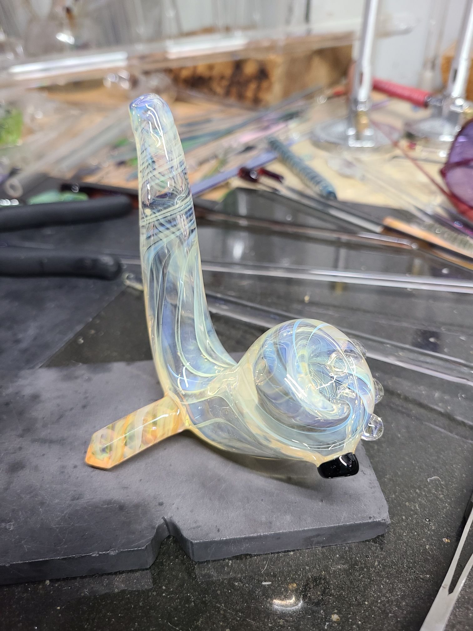 ✨️#joelsglassart #silverfume #goldfume #colorchangingglass #sherlock featuring a #borogem and a dash of black on the carb. ✨️
