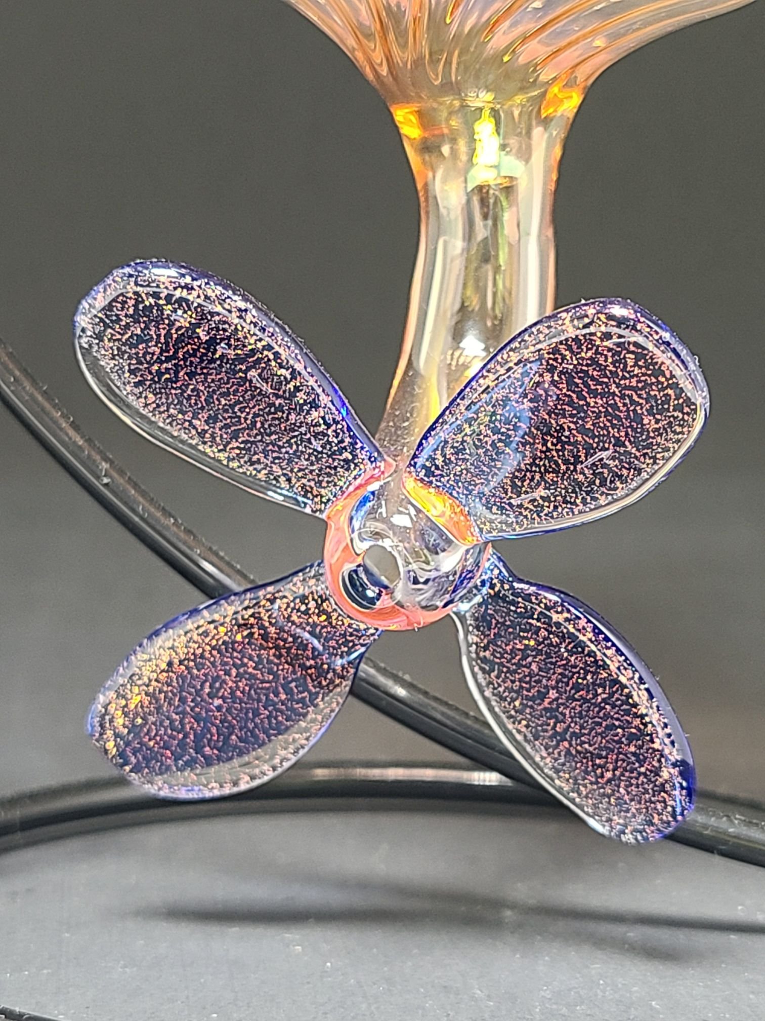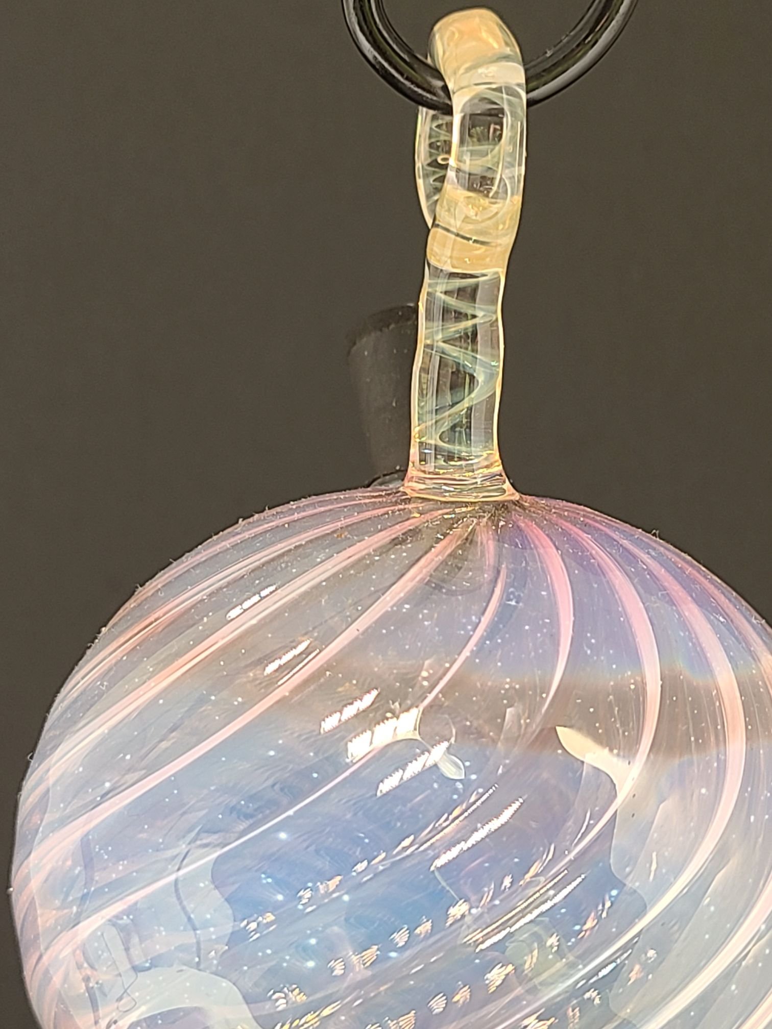 Hand Flame-Worked Borosilicate Glass Hummingbird Feeder — Silver & Gold Fumed with Dichroic Accents