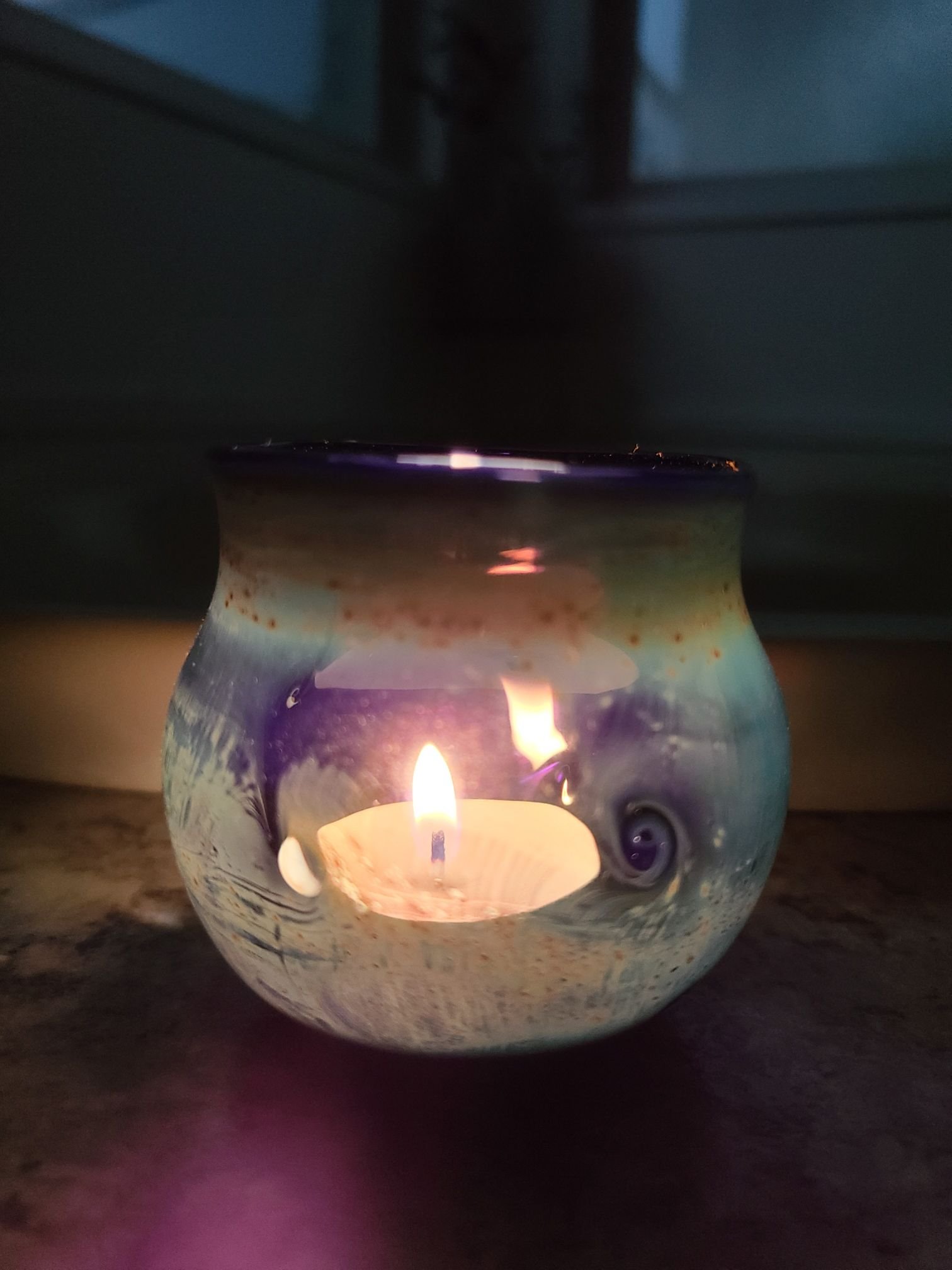 Joelybaby ‘Starry Night’ teal light candle holder. Made with silver fumed ‘space tech’. Enjoy a Starry Night, every night! All Joelybabies come shipped in a little gift box, and with a tea light candle so you can enjoy it right out of the box 🙂